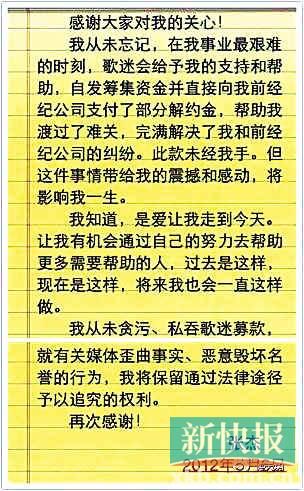 近日,一則“粉絲為張杰募集解約金”的質(zhì)疑帖在網(wǎng)絡(luò)上引發(fā)熱議,有網(wǎng)友質(zhì)疑2008年粉絲為張杰募集用于和“老東家”上騰解約的百萬元款項去向不明,而張杰當(dāng)年拿了這筆錢,卻沒有兌現(xiàn)對粉絲“舉辦不售票演唱會”的承諾。對此,張杰的經(jīng)紀公司方面全面封口。而上騰娛樂總經(jīng)理陳耀川則表示已收到賠償金,不會追究款項來源。