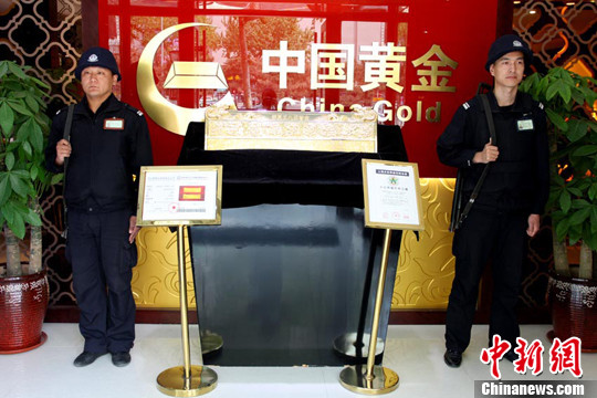 5月9日,一塊總重量為99.999公斤,含金量為99.999%的巨型金條在長春展出,吸引許多市民前來參觀。據了解,這塊金條長99.999cm,寬28.999cm,厚度為1.8cm,以北海九龍壁為設計原型,采用霧面噴砂、高浮雕、黃金壓制、澆鑄等工藝制作,目前中國僅有一塊,將在長春展示七天。展出期間,始終有兩名安保人員荷槍守衛,以防不測。