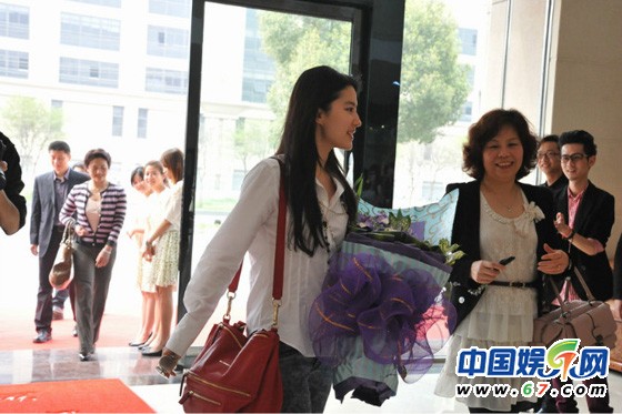 劉亦菲參觀服裝公司 干爹陳金飛全程陪同親密隨行