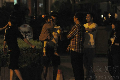 這對“姐弟戀”,從相識到結婚生子,一直處在人們的懷疑聲中。不過兩人的感情卻有越挫越勇的架勢,只要是兩人同時出席的場合,總能給人帶來甜蜜溫馨的感覺。其中,天真頑皮的小愛馬絕對功不可沒。日前某天晚上十點半左右,我們在麗都附近一家酒吧露天座發現文章馬伊琍夫婦。當時文章夫婦正與幾位友人在此喝酒聊天,馬伊琍則拿出手機,面帶喜色的與對方煲電話粥。席間眾人有說有笑,氣氛相當融洽。此時我們發現,小愛馬也在其中,她手舞足蹈,向在座友人展現“高超”舞技,很有舞蹈天賦。不多時,文章馬伊琍一行人走出酒吧。文章一身休閑裝扮與一男一女走在前面,搭著兩位友人的肩膀,醉眼惺忪,顯然有些喝高了。馬伊琍牽著小愛馬跟在后面。小愛馬蹦蹦跳跳的走在媽媽身邊,看上去十分開心,離別時與同行叔叔打鬧,甚是調皮。文章一把將女兒抱入懷中,而小愛馬似乎還沒玩盡興,仍伸手與叔叔打鬧,無奈文章只得抱著女兒與友人道別離開。