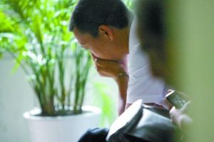 ![]() 廖俊偉的父親坐在醫院的凳子上傷心不已。 (記者 王海 攝)