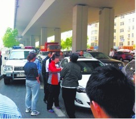 “撞車了嗎?出了什么事?”記者跟圍觀的群眾了解情況時,一位市民說:“開灰色轎車的長發女子好像認識倒在地上的女子,看見對方開的白色車,一下子撞過去截住了,把人家拉下來就打。”