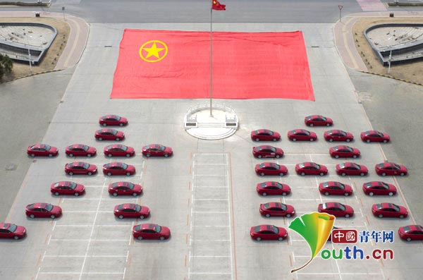 大慶青年自組織以拼車藝術向建團90周年獻禮(石全供圖)