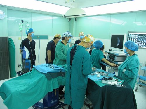 5月5日徐院長第一次給霖霖做了檢查后發現,霖霖不僅鼻腔被腫物堵塞,還有嚴重的腺樣體肥大及中耳炎,霖霖的鼻腔腫物快速增長也是與腺樣體肥大有著密切的關系。鑒于霖霖的病情比較嚴重,徐欣院長立即組成了專家小組進行了會診,由博士生導師史麗、研究生導師徐欣、享受國務院津貼教授陳瑛、山東省鼻內窺鏡技術創始者張大良教授來構成的專家組對霖霖的情況詳細交流研究后確診為“先天性鼻腔腫瘤”,并確定需要進行手術,專家組對手術方案做了周密的設計,并對手術中可能出現的風險和意外做了全面的評估和充分的應對方案。