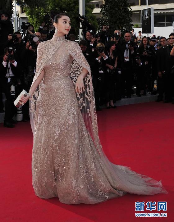 范冰冰楊冪戛納斗艷 楊冪黃裙擠胸露胸貼(組圖)