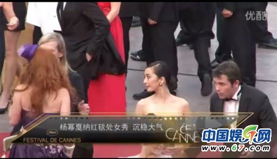 之后有網友在微博上爆料稱,楊冪走戛納紅毯因滯留太久,幾次三番被工作人員“勸離”而面露尷尬。依然淡定“堅守紅毯”面對閃光燈的楊冪被網友封為“淡定姐”。