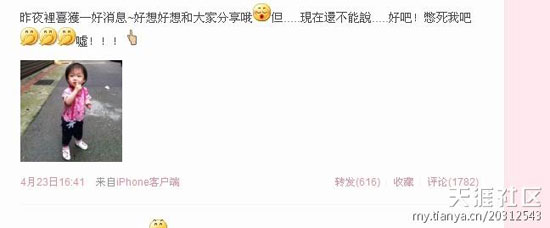 網絡截圖,安以軒在微博上說有一個驚天好消息