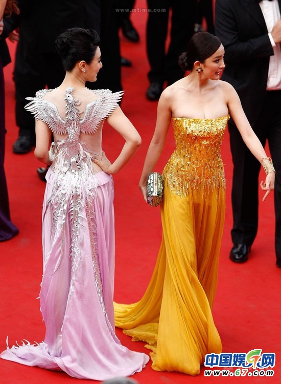 戛納影展第二日,楊冪和陳廷嘉盛裝隨《畫皮2》劇組踏上紅地毯,但現(xiàn)場記者貌似都不認識二人,長槍短炮都瞄準其他嘉賓。沒人理會的她們誓不罷休,到處狂擺pose不肯走,因滯留太久遭當(dāng)?shù)乇0捕啻悟?qū)趕,惱羞成怒的楊冪氣得對保安豎起中指發(fā)泄。另外,楊冪這次走紅毯的金色長裙也劣評如潮,顯得相當(dāng)俗套。