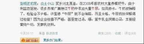 “蒙牛添加牛尿”網友曝光:蒙牛牛奶中被加入了大量的牛尿