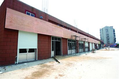 ????磚紅色的瓷磚已經(jīng)貼上了外墻,20多個(gè)門(mén)頭房已經(jīng)裝修完畢,在市場(chǎng)內(nèi)部不少工