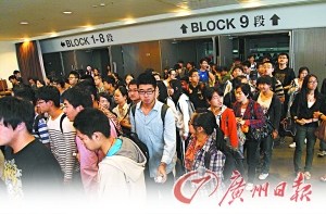 “美國高考”離中國內地最近的考場在香港,一年考6次,幾乎次次都是這樣的景象:內地高中生“千軍萬馬”赴港趕考。