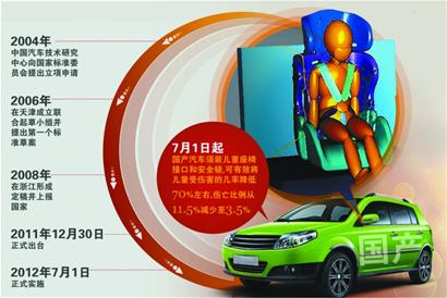 ????近年來,交通事故已經(jīng)成為了中國兒童第一大死亡原因,每年有超過1.8萬名兒童死于交通事故,而如果使用兒童汽車座椅,死亡率則可以下降七成。 7月1日起,我國《機(jī)動車兒童乘員用約束系統(tǒng)國家標(biāo)準(zhǔn)》將正式實施,國產(chǎn)汽車必須安裝座椅接口和安全鎖,而市場上一些良莠不齊的車載兒童座椅,今后必須經(jīng)檢驗合格后才能上市,兒童乘車安全將首次有“法”可依。