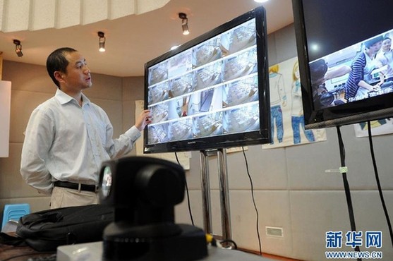 6月6日,在華東模范中學考點內,監控室的屏幕上可監控所有教室的實時情況。