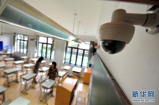 6月6日在華東模范中學考點內拍攝的全方位視角攝像探頭。今年高考期間,上海所有考點的教室內都已安裝攝像探頭。