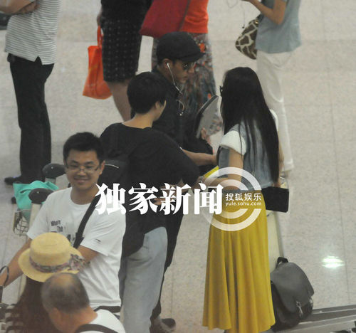 楊冪劉愷威情侶裝現身機場 楊冪摘墨鏡安檢素顏憔悴(圖)