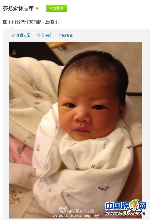 6月6日晚,林志穎在微博上傳一張嬰兒照片,林志穎稱林家有了新成員。此微博一發馬上引起粉絲轟動,粉絲紛紛猜疑這個嬰兒的身份,有粉絲稱是林志穎的小兒子,kimi的弟弟。有粉絲說近期沒有志穎嫂懷孕的消息,這個嬰兒可能只是家族成員的小孩。面對眾多好奇的粉絲,林志穎至今沒有公布正確答案。