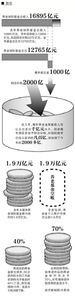 在我國開始建立城鎮職工養老制度之前就缺乏基金積累,現收上來的錢長期墊付此前的欠賬,造成養老金空賬。鄭秉文預計這個數字達1.9萬億。