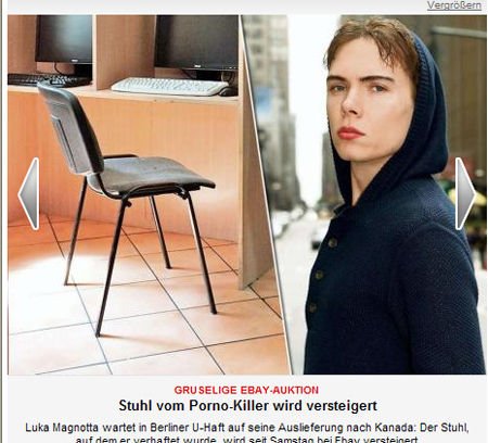 加拿大碎尸案元兇馬尼奧塔和他在網吧所坐的椅子(網頁截圖)