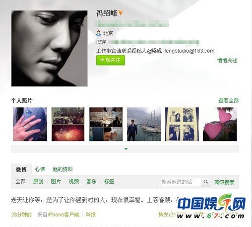 自劉愷威和楊冪勇敢地公開戀情之后,“峰冪戀”便成了泡影。不過“八阿哥”馮紹峰并沒有落單多久,日前某論壇網友爆料,馮紹峰與新“謀女郎”倪妮相戀一個多月了。昨天,馮紹峰在微博上大方承認和倪妮相愛的事實,并發表肉麻的愛的宣言。
