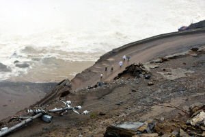 昨日上午,走在玉龍縣鳴音鄉通往阿海電站的路上,靠近電站的一段公路上多處塌方,泥沙和石頭成堆地堆在路上,公路邊的一些水溝滿是泥沙和石頭,足見當時降雨之大。鳴音鄉當地的金沙江邊的村民認為,除了天氣原因外,施工工人缺乏對當地天氣的認識也是事故發生的原因之一。