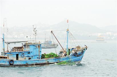 ????昨日,記者在八大峽廣場看到,來自城陽等地的打撈船在棧橋、小青島附近海域來回巡航,船上工作人員不時用攻兜網打撈滸苔,有些漁船上已經裝載了不少滸苔。據市滸苔應急指揮部工作人員介紹,今年滸苔應急處置工作將設立三條防線,嚴防滸苔對居民生活造成影響。