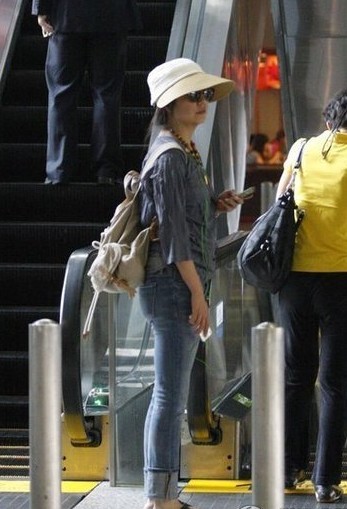 趙薇現身機場打扮普通似游客 無人接機面露不悅(組圖)