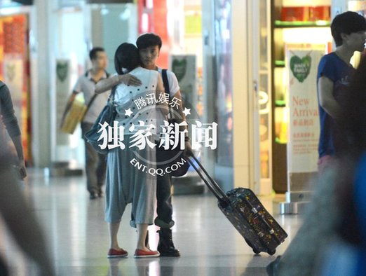 蔡少芬與老公擁抱告別戀戀不舍 機場當眾纏綿(組圖)