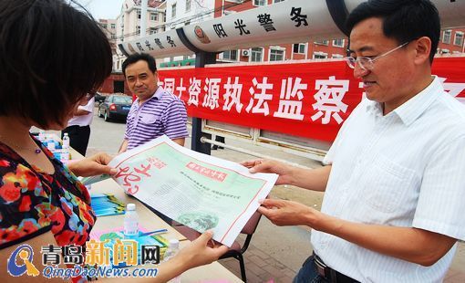 ????青島新聞網6月27日訊 6月25日上午,為紀念第22個全國“土地日”,市國土資源執法監察支隊與城陽國土資源分局在城陽棘洪灘街道辦事處聯合開展了以“建設高標準基本農田、保障國家糧食安全”為主題的國土資源執法監察藍色盾牌行動暨6.25土地日宣傳活動。4個小時的活動,接受待眾政策咨詢100余人次,發放明白紙1000余張、宣傳手冊600余本。市國土資源執法監察支隊馬剛支隊長接受了本網