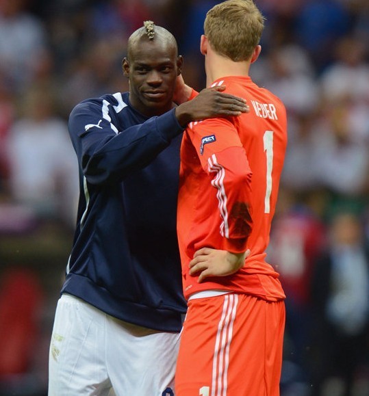 意大利在第20分鐘先聲奪人,皮爾洛長傳打到左路,卡薩諾甩開上搶的胡梅爾斯左路傳中,巴洛特利門前力壓巴德斯圖貝爾大力頭球攻門得手,1-0!(進球視頻)第24分鐘,博阿滕右路斜傳禁區,戈麥斯頭球蹭偏,兩分鐘后,博阿滕長傳發動進攻,戈麥斯背身做球,厄齊爾跟進大力低射,布馮倒地將球撲住。第30分鐘,托尼-克羅斯外圍重炮轟門打高。 意大利在第36分鐘再下