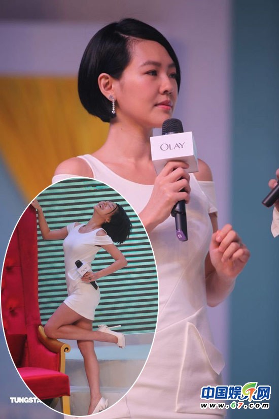 近日,小S頻繁現身京城撈金,為某美容品代言站臺。昨天,一身白色露肩裝現身的小S,配合蔡康永這一老搭檔一出場就笑果不斷,依舊不忘耍寶的小S一出場就擺出女王架勢,逗得全場前仰后合。現場,其囂張把自己的披風脫掉,大秀苗條身材,十分風騷。再度生孩子的她,胸部十分豐滿,盡管包得很緊,仍看得出來有下垂的痕跡。