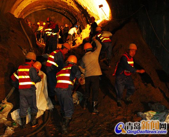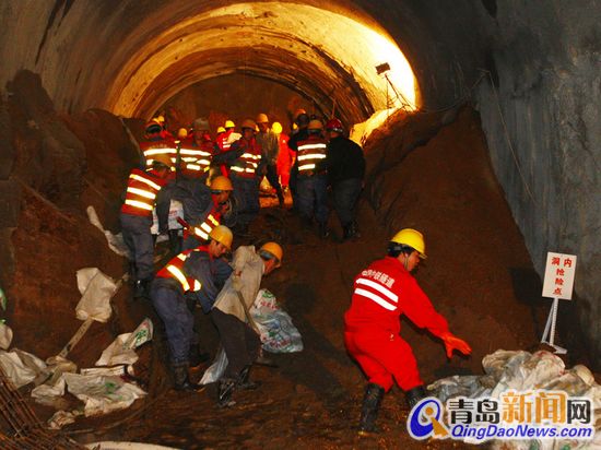??? 地鐵公司相關(guān)處室負責(zé)人在接到匯報后馬上進行部署,趕赴現(xiàn)場。此時施工單位已協(xié)助122交警拉設(shè)警戒線,封閉路面交通,制定初步搶險方案,組織力量封閉掌子面(地鐵地下隧道現(xiàn)場)。根據(jù)現(xiàn)場情況,地鐵公司啟動青島市地鐵工程突發(fā)事件四級應(yīng)急響應(yīng),并迅速成立了現(xiàn)場指揮部。 ????