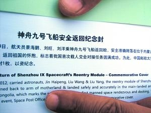 神舟九號成功發射并返航,中國郵政太空郵局為此發行了一系列紀念封。然而,郵友王先生卻發現,他買到的紀念封,竟有人名拼音錯誤。