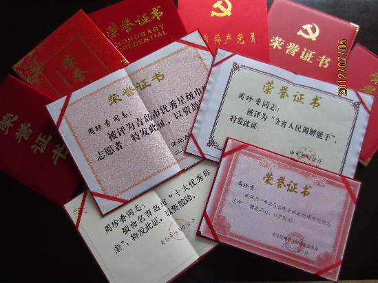 ????從鬼門關前逃了出來,周珍香格外珍惜得來不易的生命 ,“經歷了這些,我很關注公益。”除了做調解,周珍香還做了2008年奧帆賽和殘奧帆賽的志愿者。憑借自己熱衷公益的熱情和抗癌的勇氣,周珍香先后獲得青島“十大優秀母親”、“感動市北十佳人物”、南京中科全國“十佳抗癌明星”等榮譽稱號,獎金她也全拿了出來,用在了貧困居民和社區當中。“我的病好了之后,很多患了癌癥的人向我打聽怎么治病,我會告訴他們14年來我多虧了中科靈芝孢子油,另外心態非常重要,有一個好心態,癌癥并不可怕。”周珍香說。