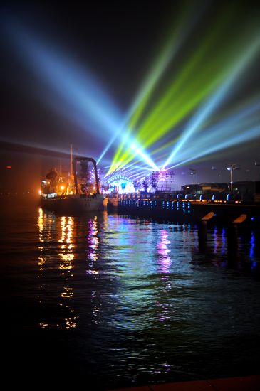 青島新聞網7月21日訊 昨晚8時,2012中國青島國際海洋節開幕式在奧帆中心劇場前廣場舉行,頗具海洋特色的音樂歌舞表演和高空焰火令開幕式現場形成一片歡快的海洋。 據了解,2012中國青島國際海洋節活動將持續到8月4日,持續時間為16天,主會場設在奧帆中心。