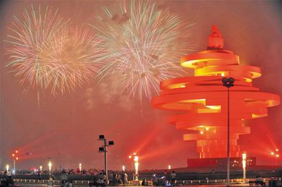 昨晚9時左右,一團團絢麗的焰火將夏日的浮山灣渲染得五彩繽紛,激情四射。這場盛大的焰火表演拉開了2012中國青島國際海洋節的序幕。從今天開始到8月4日,奧帆中心每天都將有豐富多彩的活動讓市民和游客來感受藍色海洋的文化魅力。