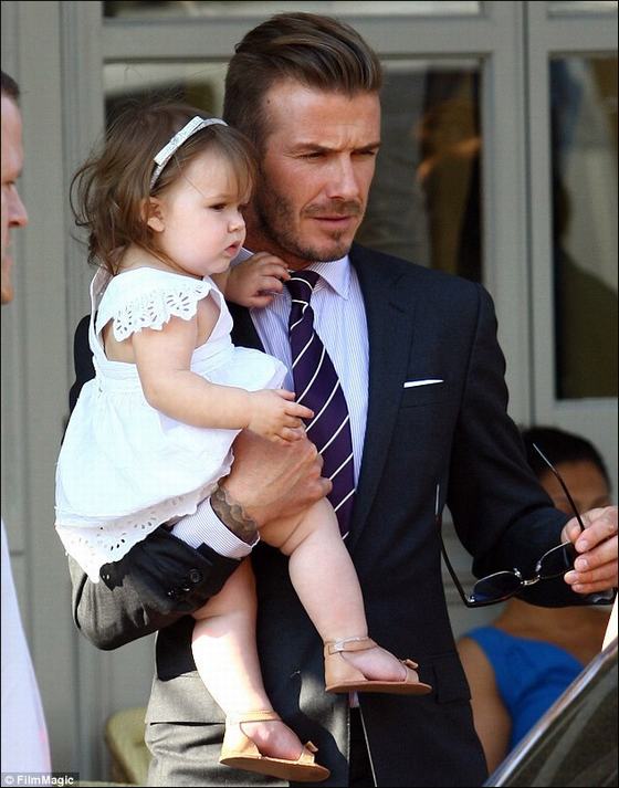 貝克漢姆攜妻女外出用餐 小哈波叼手指超萌(圖)