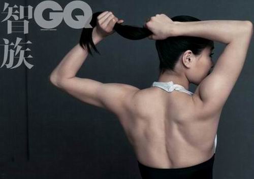 ????近日,剛剛三度蟬聯奧運會女子雙人3米板冠軍創造歷史的跳水女將吳敏霞全新《GQ》大片曝光。身著黑色泳衣的她展現了運動員特有的體態美。圖為吳敏霞秀性感后背。