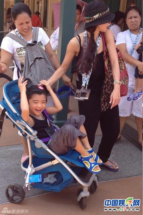 張柏芝攜二子游樂園內慶生 Lucas5歲仍坐嬰兒車(圖)