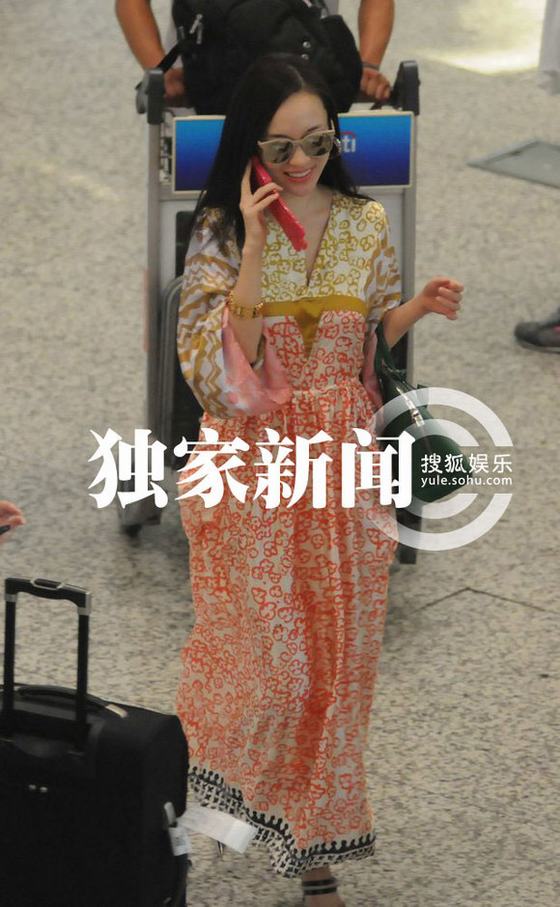 霍思燕現身機場 與熱戀男友打電話撅嘴撒嬌賣萌(組圖)