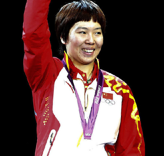 2012年8月1日,倫敦奧運會,乒球女單內戰,李曉霞力克丁寧奪冠。圖為李曉霞在頒獎儀式上。