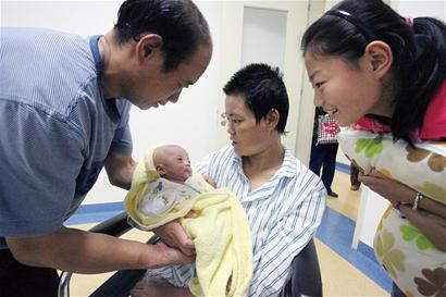 “破爛王”趙祥海的妻子于曰芳在昏迷無意識狀態下順產生下一對雙胞胎男嬰,上演了一段生命奇跡。昨日,家人抱著出院不久的老大趙恩永回到醫院做新生兒身體檢查并接種疫苗。利用這次機會,于曰芳第一次見到了兒子,當她伸出右手抱恩永時,老趙也流下了幸福的淚水。目前,老二趙恩志仍在青醫附院接受