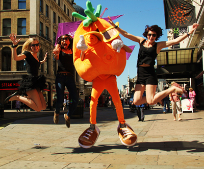 ????據悉,該美女打劫團由前世界小姐 KATIE FARR( 凱蒂?法爾 ) 、英國國家體操隊運動員 AIMEE( 艾米 ) 、英國知名模特時尚寵兒 CHINWE( 晨維 ) 組成,為了模擬外星人空降倫敦奧運街頭的盛況,更是攜一個超大超萌的玩偶為倫敦市民上演一場驚心動魄的“星球大劫”。