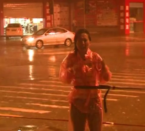 今年第11號(hào)強(qiáng)臺(tái)風(fēng)“海葵”的中心于8日3時(shí)20分前后在浙江省象山縣鶴浦鎮(zhèn)沿海登陸,登陸時(shí)中心附近最大風(fēng)力14級(jí)。在“??钡顷懬?0分鐘,寧波市氣象服務(wù)中心北侖追風(fēng)小組從北侖城區(qū)發(fā)回現(xiàn)場(chǎng)報(bào)道。為了防止被風(fēng)吹跑,出鏡女記者腰上栓繩進(jìn)行報(bào)道。即便如此,女記者還是無(wú)法站穩(wěn),甚至一度不得不蹲下。