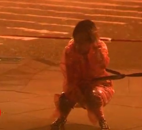 今年第11號(hào)強(qiáng)臺(tái)風(fēng)“海葵”的中心于8日3時(shí)20分前后在浙江省象山縣鶴浦鎮(zhèn)沿海登陸,登陸時(shí)中心附近最大風(fēng)力14級(jí)。在“海葵”登陸前20分鐘,寧波市氣象服務(wù)中心北侖追風(fēng)小組從北侖城區(qū)發(fā)回現(xiàn)場報(bào)道。為了防止被風(fēng)吹跑,出鏡女記者腰上栓繩進(jìn)行報(bào)道。即便如此,女記者還是無法站穩(wěn),甚至一度不得不蹲下。
