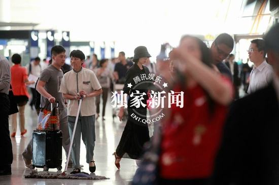 當天,董卿的助理團隊也現身了,一男一女,可謂干活不累組合。兩位助理人手一個箱子,跟在董卿后面,董卿一路低著頭,帽檐壓得很低。