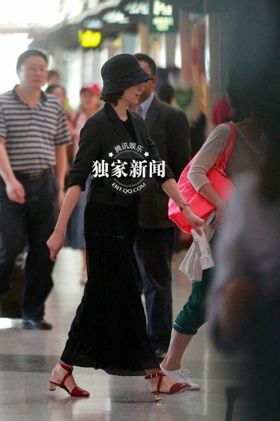 董卿素顏亮相驚路人 黑衣紅鞋混搭顯潮范(組圖)
