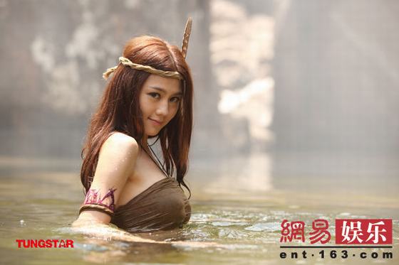 由周秀娜與楊冪、劉愷威合作的電影《Hold住愛》,早前到三亞深山取景拍攝河中出浴戲份,現場過百臨時演員涂上巧克力油漆扮土人,這場戲講述楊冪幻想周秀娜在荒山野嶺河中沐浴引誘男友劉愷威。
