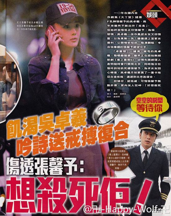 “卓馨戀”告終,被甩的吳卓羲欲求復合,雖然正在趕拍無線新劇《沖上云宵2》,卻預先跟經(jīng)理人表明隨時會飛北京,同時每日狂發(fā)吟詩短信死纏張馨予,為求女友回心轉(zhuǎn)意,吳卓羲月初更買了一只白金戒指,速遞到北京哄女友復合。
