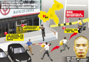 2012年8月10日上午,重慶市沙坪壩區中國銀行一儲蓄所門前發生一起持槍搶劫殺人案。犯罪嫌疑人周克華持仿“五四”式手槍殺死1人、殺傷2人,搶走死者隨身財物后潛逃。