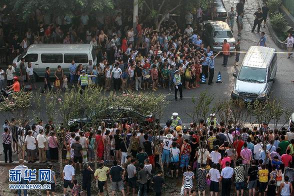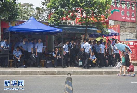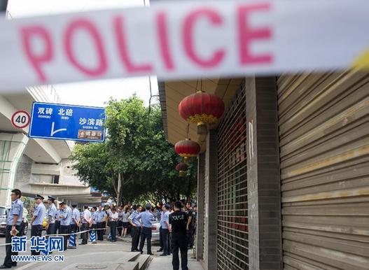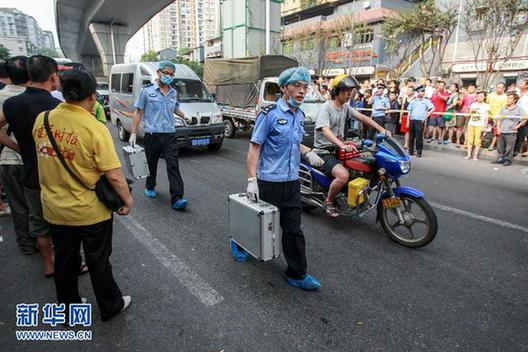 8月10日,警方正在案發現場進行取證工作。新華社發